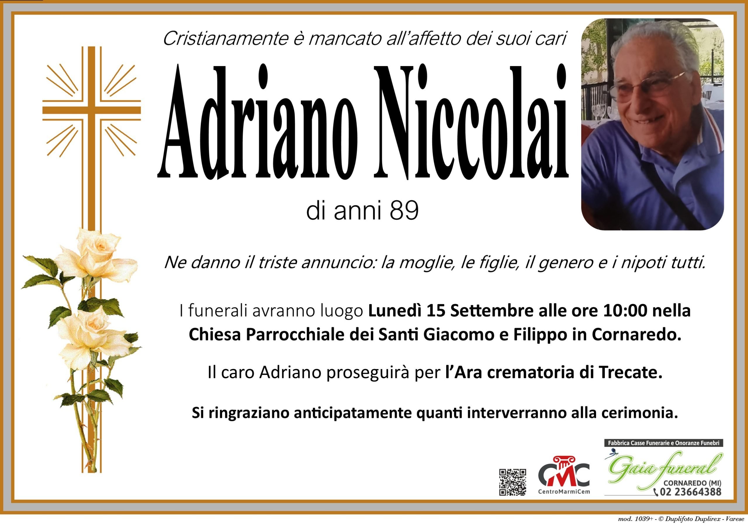 Cristianamente è mancato all’affetto dei suoi cari Adriano Niccolai di anni 89.