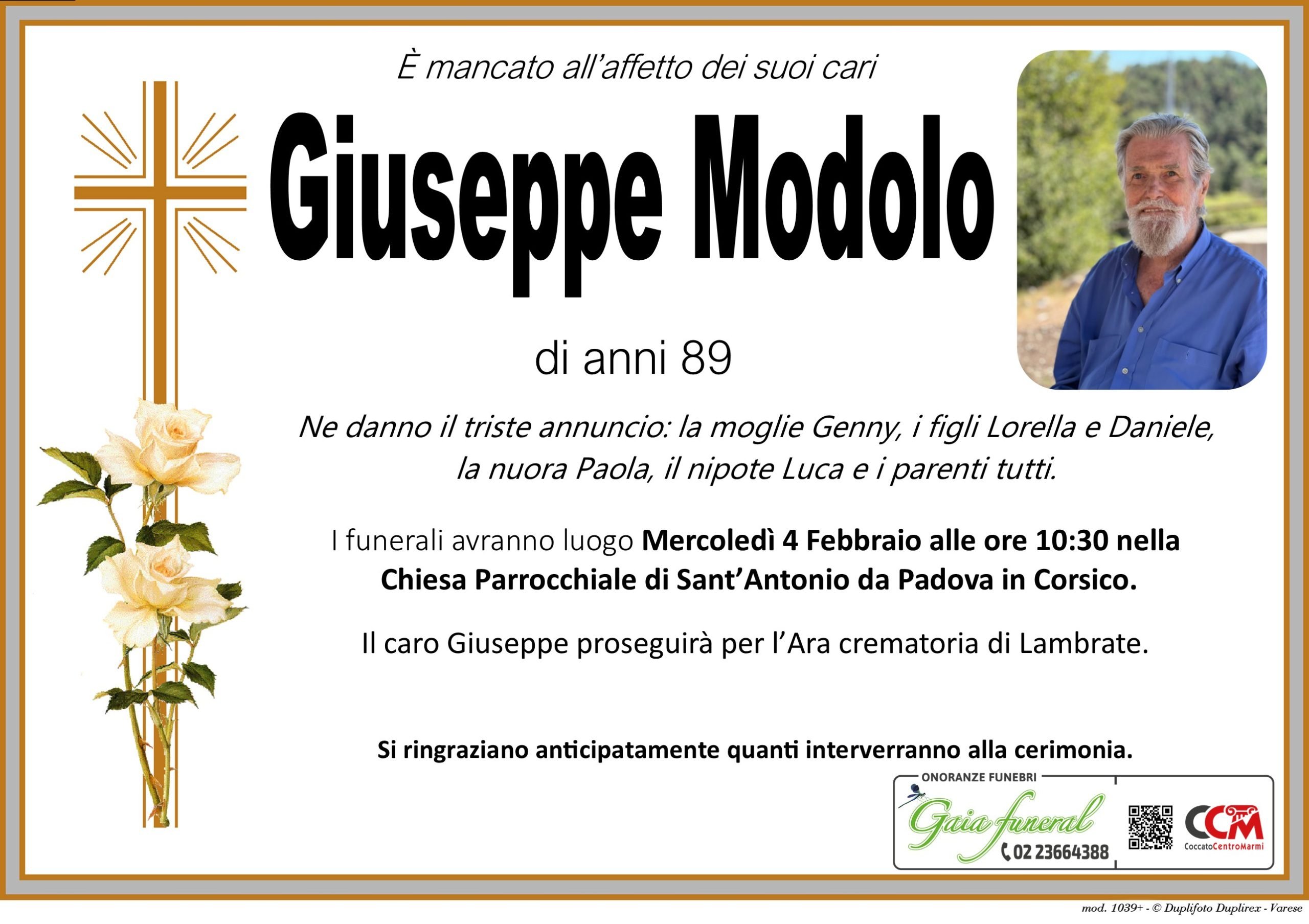 È mancato all’affetto dei suoi cari Giuseppe Modolo di anni 89.