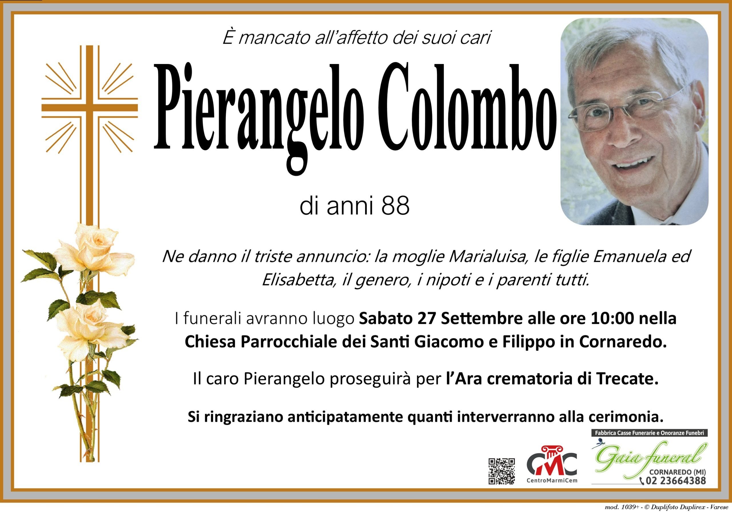 È mancato all’affetto dei suoi cari Pierangelo Colombo di anni 88.
